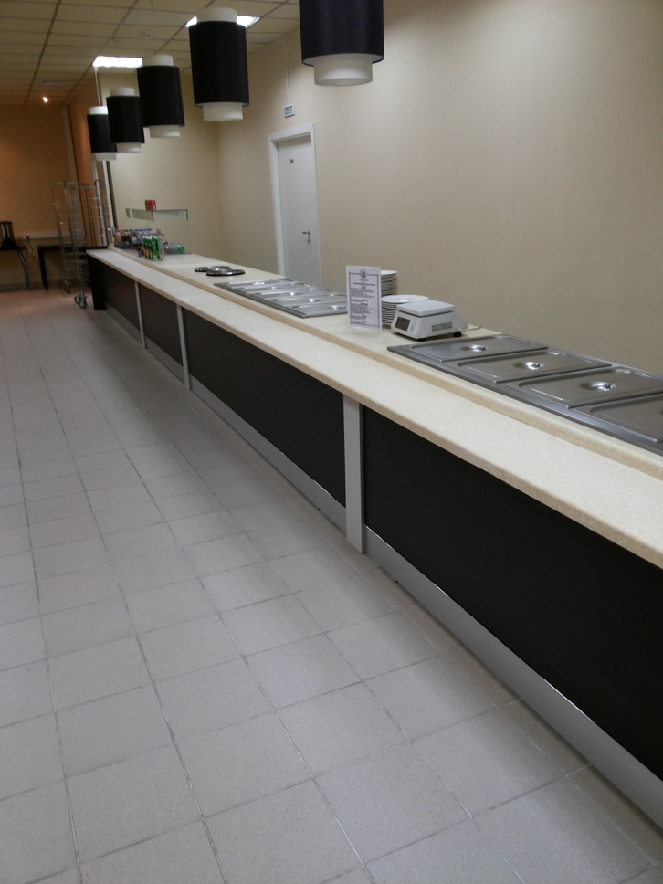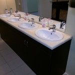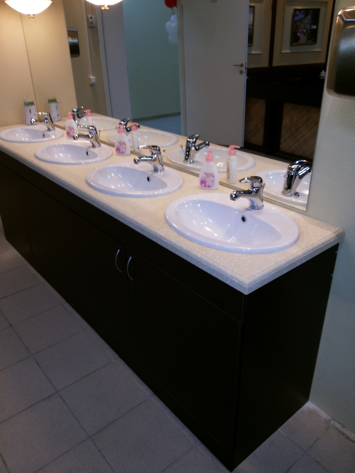 Применен метод монолитного изготовления столешниц из акрилового камня.