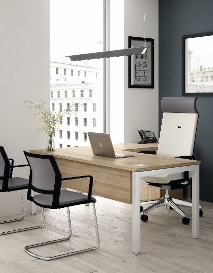 Комплектация столов опорами разной ширины позволяет формировать угловые столы и рабочие станции.