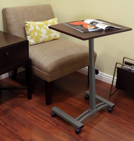 Очень удобный компьютерный стол для ноутбука, можно использовать как придиванный. Высота регулируемая от 52-84 см. Легко перемещается и фиксируется, на колесах установлены стопоры. Можно работать сидя, лежа, стоя. Размер столешницы 60 х 40 см. Устойчивый металлокаркас. Легко собирается самостоятельно, подробная инструкция. В компактной упаковке.