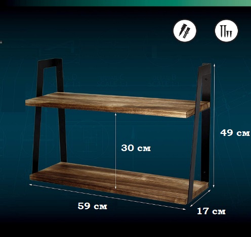 Полка навесная в стиле Лофт 100% экологичный продукт.
