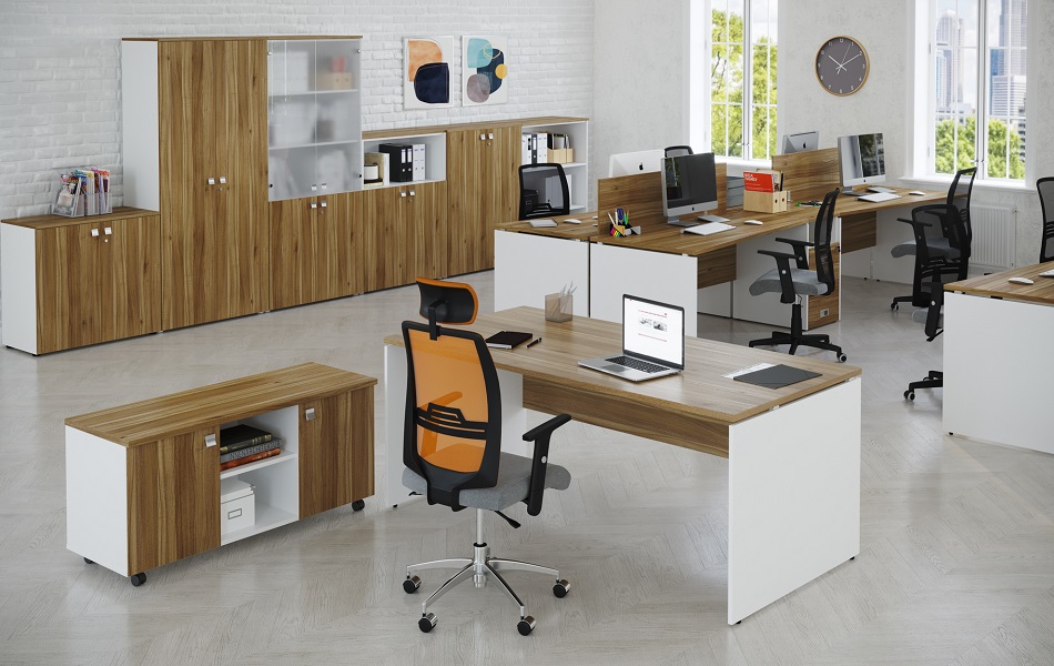 материал: ЛДСП толщина столешниц: 25 мм толщина топов тумб: 25 мм толщина каркасов: 18 мм толщина дверей: 18 мм кромка столешниц : ПВХ 2 мм кромка топов тумб: ПВХ 2 мм металлоопоры: порошковая краска (серый/белый) возможно окрашивание опор в любой цвет по RAL металлоопоры : 50х25 мм задние стенки шкафов и стеллажей : ДВПО 3,2мм или ЛДСП 18мм верхний ящик тумб с замком регулируемые опоры гарантия: 18 месяцев