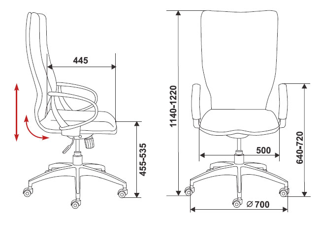 • механизм качания с регулировкой под вес и фиксацией в вертикальном положении • регулировка высоты (газлифт) • подлокотники с мягкими накладками • ограничение по весу: 120 кг